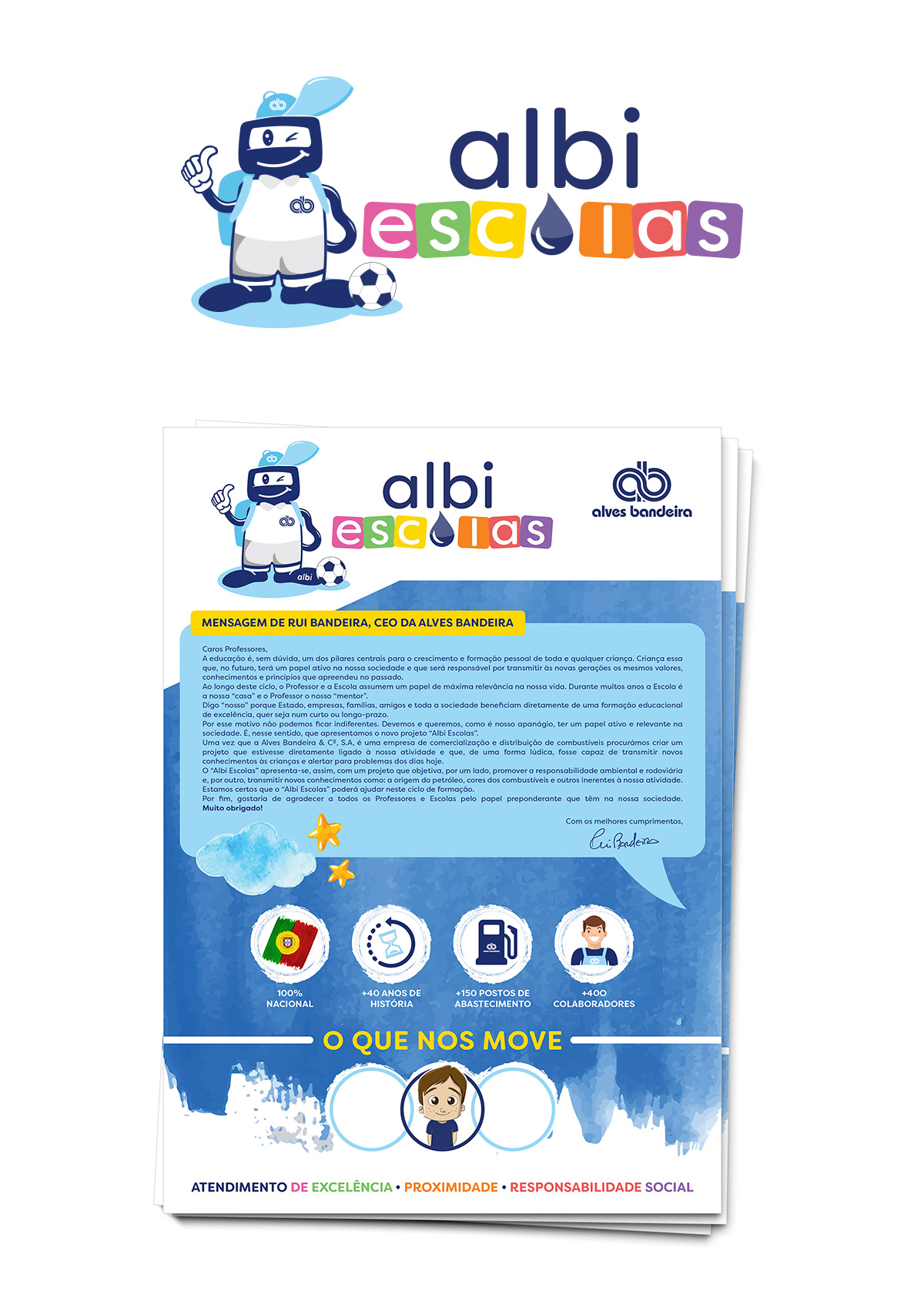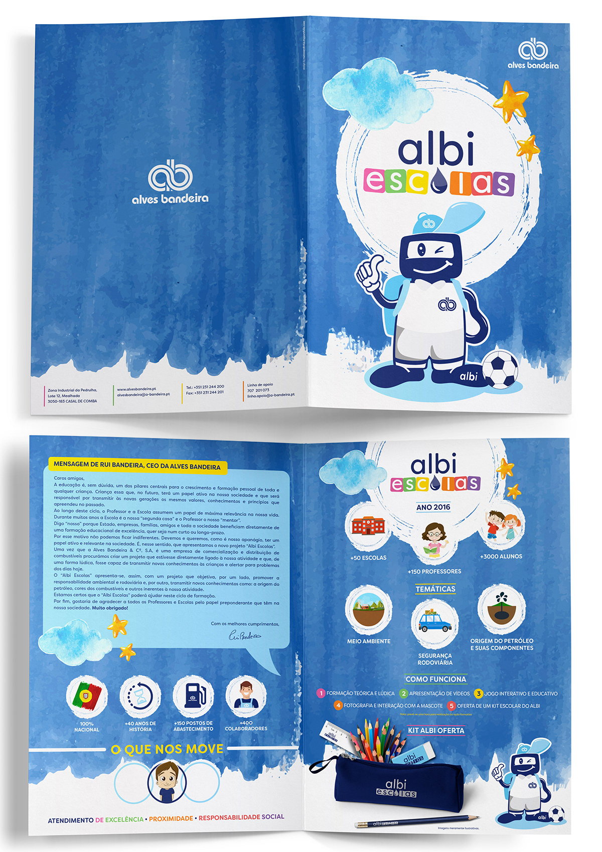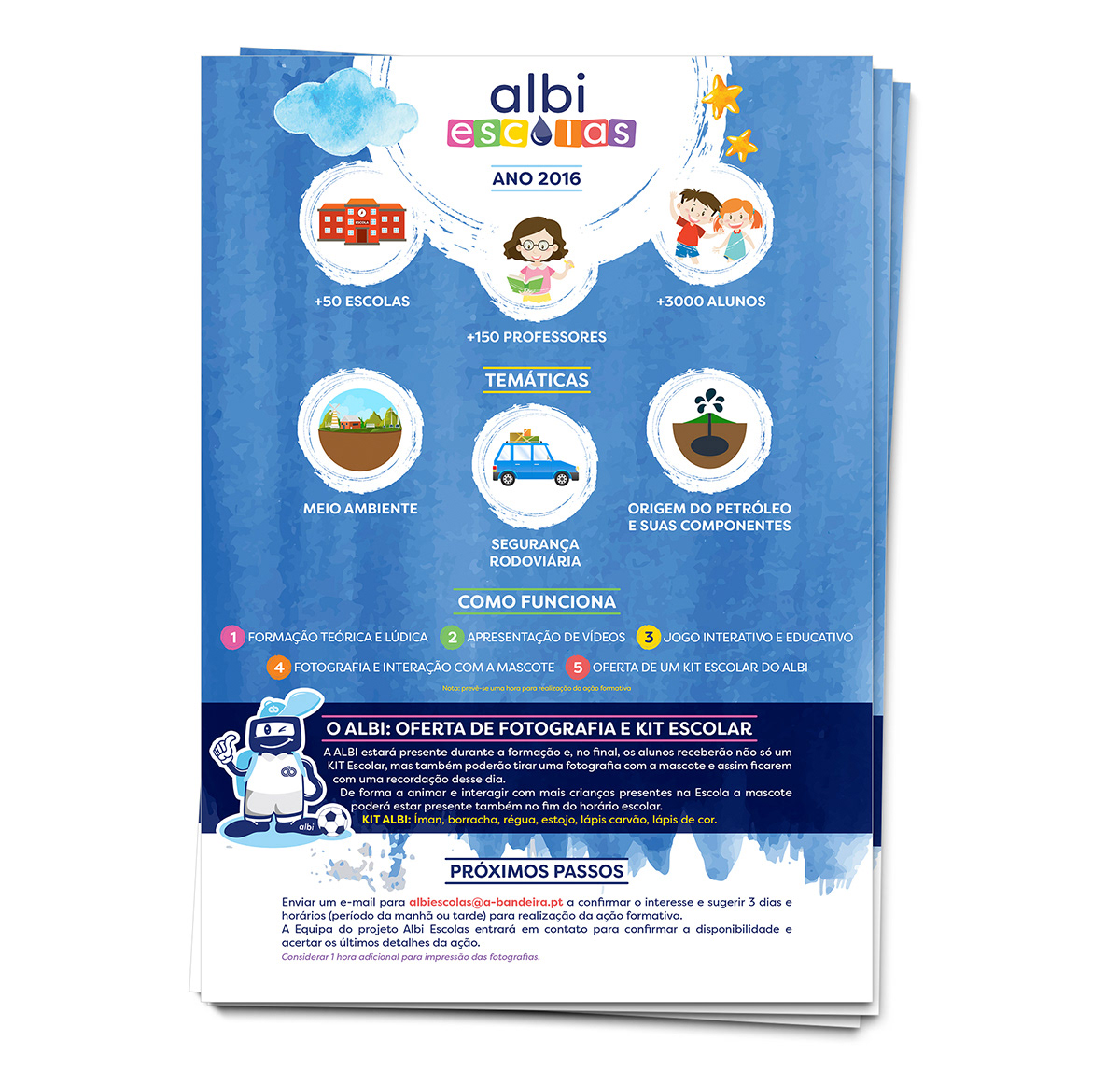 Logo and mascot design, presentation sheet, covers and educational magnetic board design.